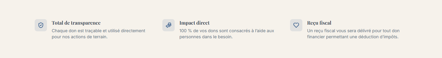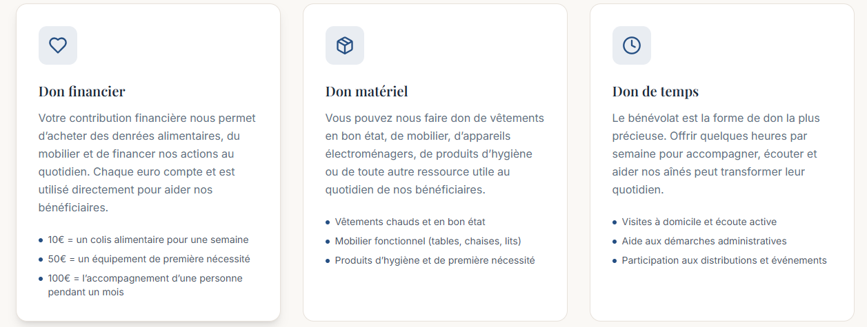 Pour effectuer un don financier ou matériel, contactez-nous directement. Notre équipe vous guidera et vous accompagnera dans votre démarche de générosité.